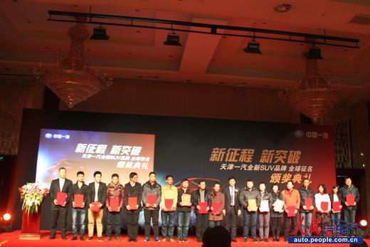 11日,天津一汽举办了旗下全新品牌全球征名颁奖典礼。新品牌正式名称将在4月的北京车展上公布,将从“骏派、云翼、澜途、炫志、昂皓”五个候选名称中产生。届时,旗下首款小型SUV T012量产版也将一同亮相。