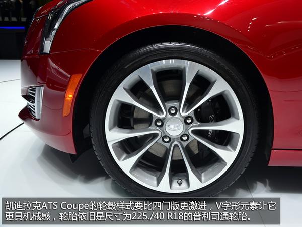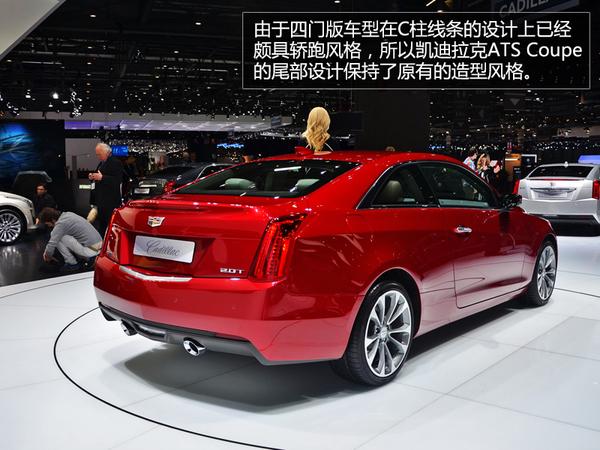 2014日内瓦车展,凯迪拉克展台最为抢眼的两个主角,分别是全新凯雷德以及ATS Coupe轿跑车,凯迪拉克ATSCoupe大部分设计都维持了四门版车型的设计风格,全新品牌LOGO、两门设计以及对细节设计和配置的改变,变成了这款全新轿跑车的亮点所在。