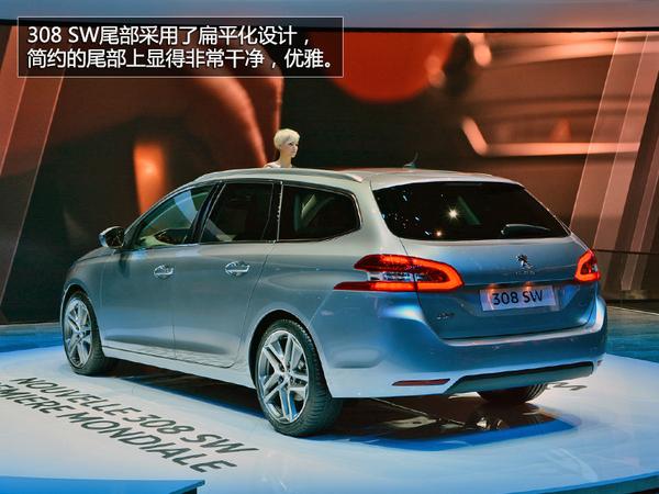 外观方面,新车的整体造型延续了全新308的设计,只是在车尾等处有了明显的变化,并增加了车顶的行李架等,同时采用了全新的后尾灯设计。车身长度为4580mm,高度为1470mm。和普通版车型一样,全新30 8SW旅行车也将基于EMP2模块研发,车身重量将有所减轻。