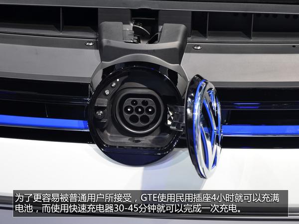 全新的保险杠设计是GTE区别于普通高尔夫的最明显特征,光导式雾灯采用了贯穿前保险杠的设计,科技感十足。为了更容易被普通用户所接受,GTE使用民用插座4小时就可以充满电池,而使用快速充电器30-45分钟就可以完成一次充电。