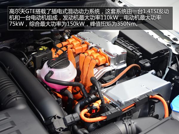 高尔夫GTE搭载了插电式混动动力系统,这套系统由一台1.4TSI发动机和一台电动机组成,发动机最大功率110kW,电动机最大功率75kW,综合最大功率为150kW,峰值扭矩为350Nm。(许振宇)