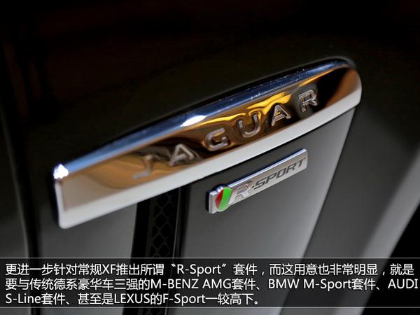 2014年度日内瓦国际车展上,看到这个冷峻的LED日行车灯,当然它就是捷豹的XF车型,而尽管没有过于夸张的外表,但这只豹子不一般。捷豹更进一步针对常规XF推出了所谓〝R-Sport〞套件,而这用意也非常明显,就是要与传统德系豪华车三强的M-BENZAMG套件、BMWM-Sport套件、AUDIS-Line套件、甚至是LEXUS的F-Sport一较高下。