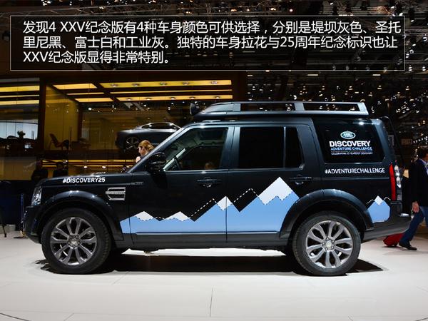 1989年路虎首次推出发现车型,并对之后的越野车深远影响。自1989年问世以来,路虎发现在全球范围内的销量已超过100万台。为了纪念路虎发现车型诞生25周年,在2014日内瓦车展上,路虎带来了路虎发现4XXV特别版车型。