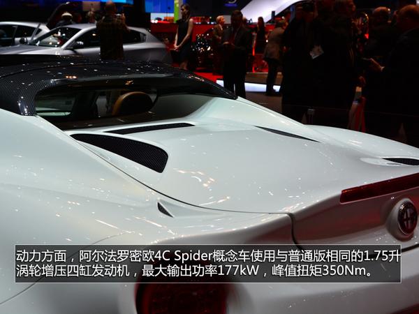 3月4日,第84届日内瓦国际车展正式开幕,阿尔法·罗密欧4C敞篷版亮相日内瓦车展。新车的最大亮点是采用可手动拆卸的顶棚,并增加碳纤维材质的防滚架。据悉,这款车车未来将会进行量产。