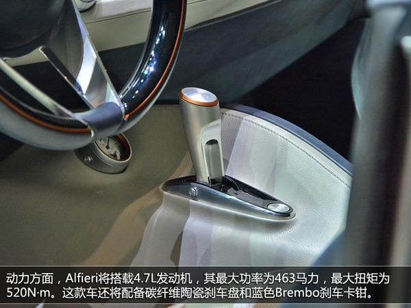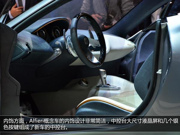 内饰方面,Alfieri概念车的内饰设计非常简洁,中控台大尺寸液晶屏和几个银色按键组成了新车的中控台。造型个性的空调出风口和全液晶仪表盘,使得新车的内饰看起来很有科技感。动力方面,Alfieri将搭载4.7L发动机,其最大功率为463马力,最大扭矩为520N·m。这款车还将配备碳纤维陶瓷刹车盘和蓝色Brembo刹车卡钳。(曹旭)