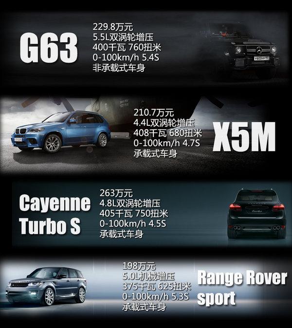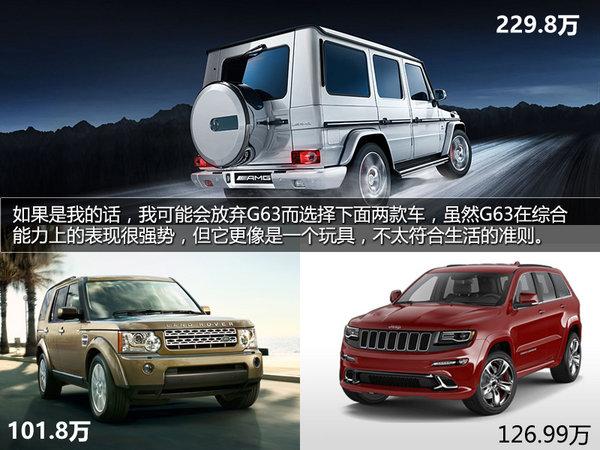 其实奔驰G63在市场中并没有绝对的竞争对手,由于它的功能过于强大,并且具有一定的特殊性,所以我们只能针对价格来为它定制几个对手。X5M、卡宴turboS和路虎揽胜运动版,在设计上与奔驰G63完全没有任何共性,说到越野能力,恐怕也只有揽胜运动版具备一定的可比性,而它们共有的特性就是运动能力,而能够选择这四款车的人,相比也是已经达到一定收入水平的人群,至于选择它们的目的,也已绝对超出了日常出行的范畴。