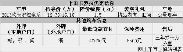 上海:丰田卡罗拉现优惠1.5万元 送装潢礼