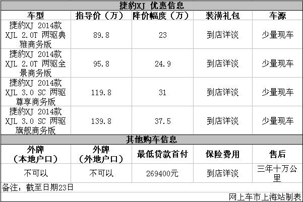 上海:捷豹XJ最高优惠35.7万元 只有少量现车