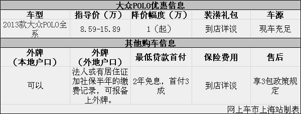 参与互动(0)日前网上车市上海站从上海西上海众达销售服务有限公司了解到,目前该店大众POLO优惠出售,具体信息见下表: