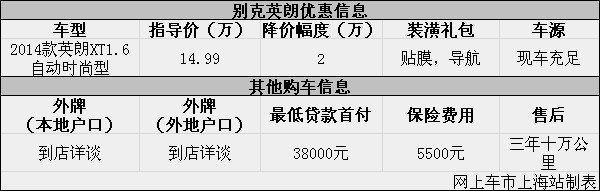 上海:别克英朗XT现优惠让利2万元 送装潢礼包