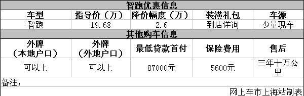上海:智跑现金让利2.6万元 售后三年十万公里