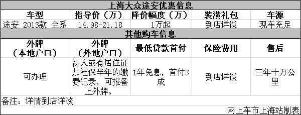 参与互动(0)日前网上车市上海站从上海西上海众达4s店了解到,目前该店途安优惠出售,具体信息见下表: