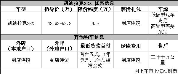 上海:凯迪拉克SRX现优惠4.5万 部分车型充足