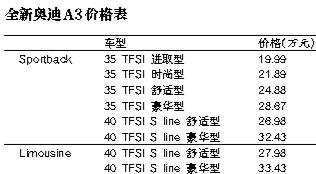 一汽大众奥迪近日在上海宣布,全新奥迪A3 Sportback与Limousine车型上市。此次新车分为国产进口共8款车型,并有1.4TFSI和1.8TFSI两种排量可供选择,售价为19.99万-33.43万元。