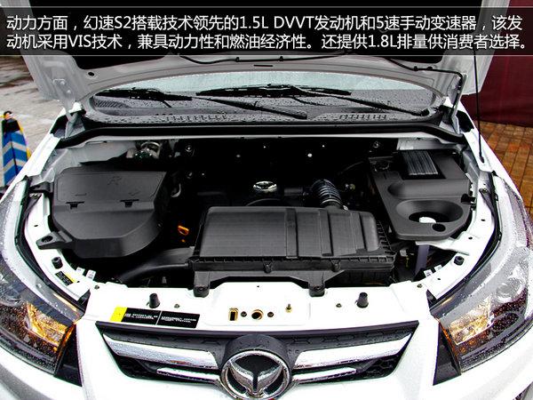 兼具城市SUV的舒适性和越野车的高性能、高通过性,是6-8万元价格区间最具性价比的超值SUV产品。动力方面,幻速S2搭载技术领先的1.5L DVVT(进排气气门连续可变正时技术)发动机和5速手动变速器,该发动机采用VIS(可变进气歧管)技术,兼具动力性和燃油经济性。还提供1.8L排量供消费者选择。
