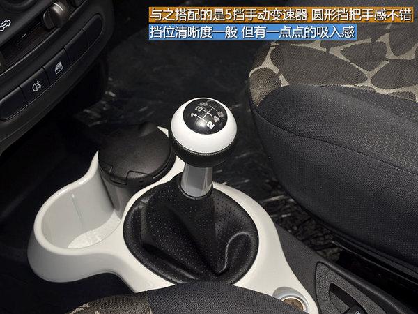 奇瑞全新QQ搭载的依旧是1.0L直列3缸发动机,千万不要担心油耗,何况还是一款手动挡车。奇瑞用10年的时间让QQ的销量达到了100万,这也说明了QQ搭载这款1.0L发动机是被大家所认可的,当然不会轻易去改变。而且1.0L用在这样的微型车上已经足够使用了。与之搭载的是5挡手动变速器,圆形挡把我很喜欢,手感也不错。挡位的清晰度一般,需要多熟悉。但是却有一点点的吸入感,熟悉一段时间操控它就可以游刃有余了。