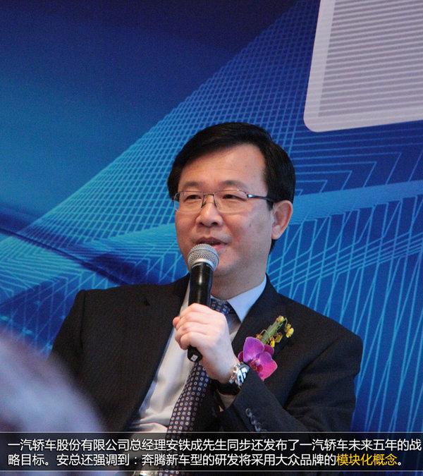一汽轿车股份有限公司总经理安铁成先生同步还发布了一汽轿车未来五年的战略目标。2013年,一汽轿车所属自主品牌全年完成销售12.78万辆,同比增幅68%。在未来的五年,奔腾将瞄准“销量领先、品牌领先、满意度领先”,同时五年内,每一年推出一款新车型。安总还强调到:奔腾新车型的研发将采用大众品牌的模块化概念。模块化生产的优势使得大量的汽车零部件实现标准化,通用化实现共享,从而缩减研发和制造成本。与此同时,也为新技术的应用创造了条件。