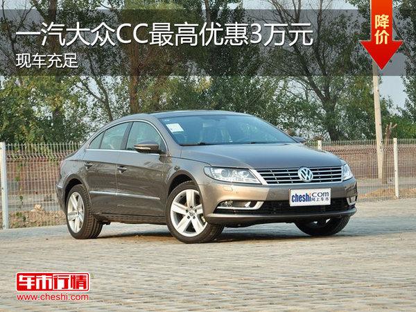 一汽大众CC自2010年上市以来便被冠以“有史上最美大众”的称号,CC的成功在于它很好地将轿车的稳定性与跑车的动感完美的结合于一身。如今,随着时间的推移,大众CC也迎来了中期改款,与上一代车型相比,全新的CC外形沉稳保守,继承了许多大众家族全新的DNA,同时它还拥有很浓厚的商务气息。近日,编辑从一汽-大众运通兴恩4S店了解到,2013款新一代CC部分车型最高现金优惠3万元。具体如下: