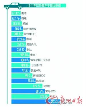 中国汽车零整比系数首度曝光 最高1273%