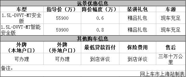 参与互动(0)日前网上车市上海站从上海华庭汽车销售服务有限公司了解到,目前该店全球鹰远景优惠出售,详情请见下表: