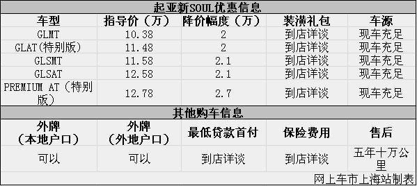上海:起亚新SOUL现优惠2万元起 现车充足
