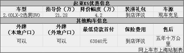 上海:起亚K5现优惠4.5万元 售后五年十万