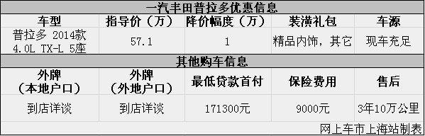 参与互动(0)日前网上车市上海站从上海宝和4S店了解到,目前该店一汽丰田普拉多优惠出售,详情请见下表: