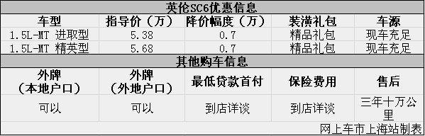 上海:英伦SC6现优惠0.7万元 送精品礼包