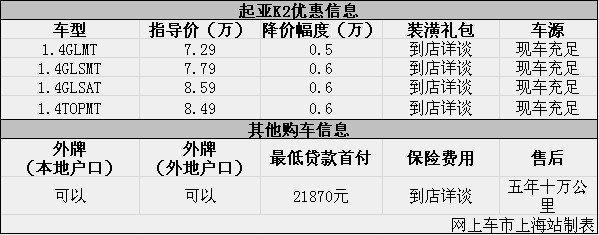 上海:起亚K2现优惠0.5万元起 购车现车充足