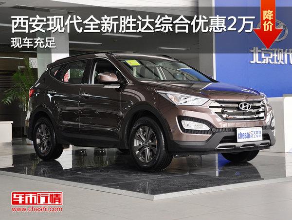近日,据网上车市西安分站编辑从西安庞大明祥北京现代4S店获悉,北京现代全新胜达现金优惠1万元,再送1万装潢优惠,现车充足,有意者不妨致电经销商或者到店了解更多信息。