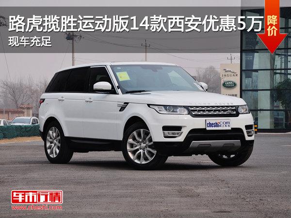 近日,据网上车市西安分站编辑从西安御胜汽车4S店获悉,2014款路虎揽胜运动版3.0T车型现金优惠5万元,现车充足,有意者不妨致电经销商或来店详询。