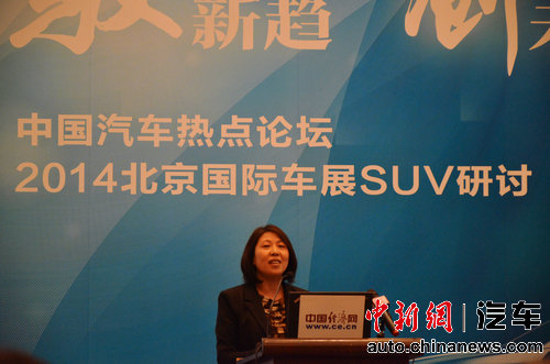中新网4月19日电 昨天,由经济日报、中国贸促会汽车行业委员会主办、中国经济网承办的“中国汽车热点论坛——2014北京国际车展SUV研讨”在北京正式举行。在研讨中,来自行业、企业的专家与全国近百家主流媒体一起,就中国SUV市场现状与发展趋势,中美SUV市场对比以及豪华SUV市场营销经典案例等,进行了深入探究与分享。