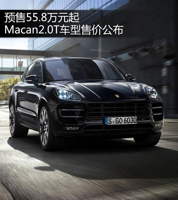 日前,保时捷官方公布了Macan2.0T车型的售价,新车预售55.8万元起。至此保时捷Macan的三款车型售价均已公布,新车即日起便可接受预定,预计7月份会陆续到店。