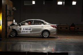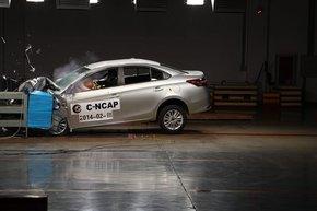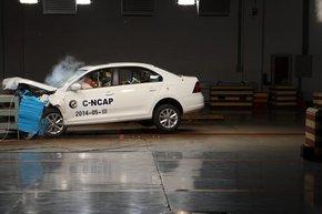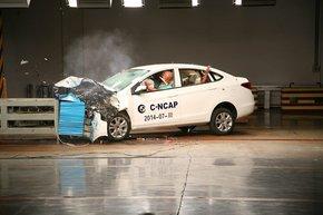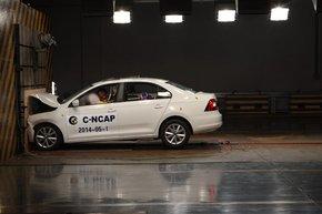 C-NCAP要求对一种车型进行车辆速度50km/h与刚性固定壁障100%重叠率的正面碰撞、车辆速度56km/h对可变形壁障40%重叠率的正面偏置碰撞、可变形移动壁障速度50km/h与车辆的侧面碰撞等试验,根据试验数据计算各项试验得分和总分,由总分多少确定星级。