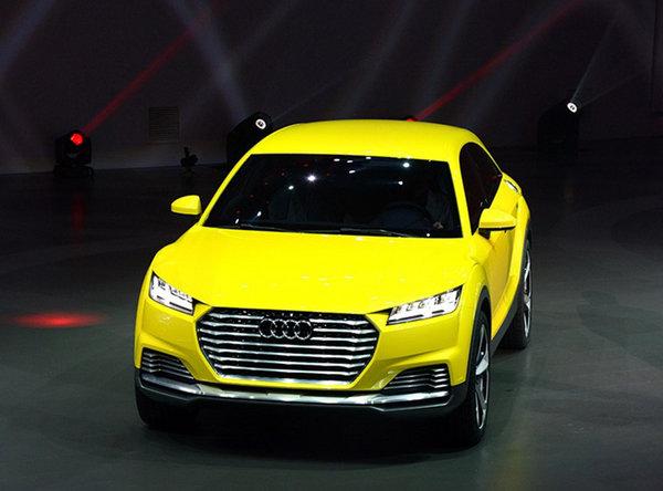 奥迪TT Offroad概念车借鉴了新一代TT的设计元素,并采用了SUV的造型。该车采用多边形进气格栅、全LED前大灯组。尾部整体设计与全新TT相似,配合夸张的大尺寸轮圈,使其整体颇为动感。