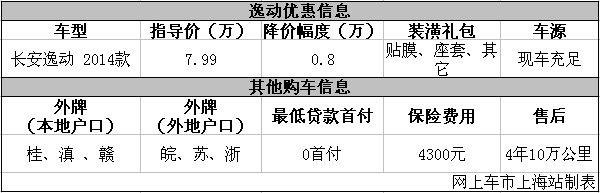 参与互动(0)日前网上车市上海站从上海嘉定长安汽车店了解到,目前该店逸动优惠出售,详情请见下表: