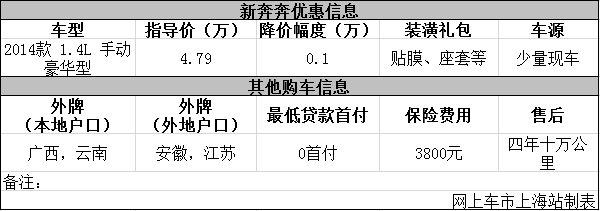 上海:长安新奔奔现金让利1千元 店内少量现车