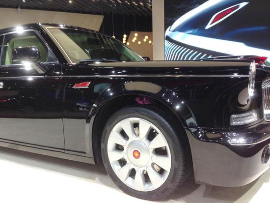 4月25日上午9时许,一汽展台已经开始接待观众,整个展台最核心的展品——红旗L5徐徐转起,有观众惊奇地注意到:一块用来擦车的抹布仍留在高达500万元的红旗L5右前轮胎上,好不扎眼…… (张宇星 摄 )