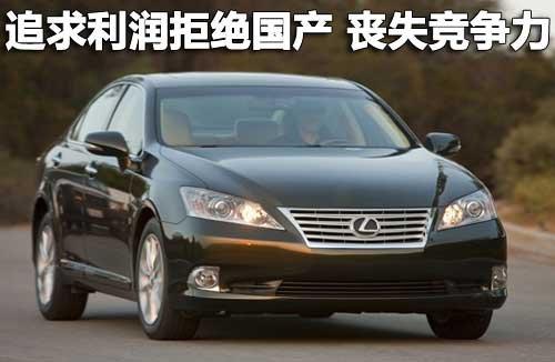 缺乏国产化的支撑,一旦遭遇风吹草动,市场增幅下滑不可避免。数据显示,2012年中国汽车市场销售同比增长4.3%,豪华车市场增长22%;雷克萨斯在这样的背景下,2012仅仅同比增长14%,难以与中国市场保持同步。而德系三大竞争对手的中国市场销量,当年基本都超过或接近20万辆的规模。
