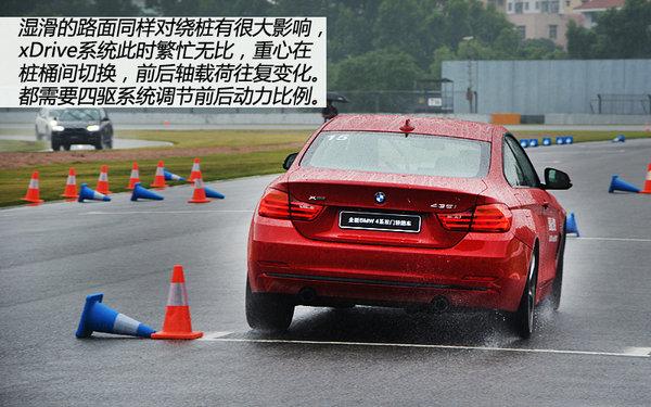 在绕桩和越野路面测试上,我们得以体会更加极端情况下车辆的动态表现。宝马4系在绕桩和紧急变线中,除了车辆悬架本身带来的操控乐趣外,四驱控制系统让车辆循迹性更精准,更灵活。牵引力能够准确的到达需要使劲的车轮上。越野路面其实并不是X5所擅长的领域,公路性轮胎打滑严重,但凭借着柴油发动机的强大扭矩和四驱系统的干预,还是能够胜任一般越野路面。(金辰毅)
