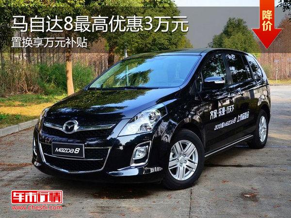 据店内销售人员介绍,目前2013款马自达8现车销售,颜色可选。售价方面,近期购车部分车型最高可享3万元车价优惠,其中2013款2.5 自动精英版现金直降2.8万元,惠后仅售19.18万元,置换则另享万元补贴。贷款购车更可享18期免息免等优惠活动。感兴趣的朋友不妨致电经销商咨询。