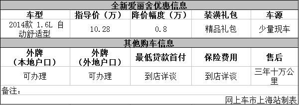 上海:东风雪铁龙爱丽舍优惠0.8万元 现车