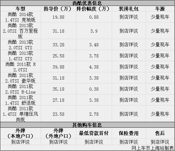 参与互动(0)日前网上车市上海站从上海正通众辉4S店了解到,目前该店大众进口尚酷优惠出售,详情请见下表: