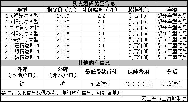 上海:全新君威最高优惠3.3万元 部分车型充足