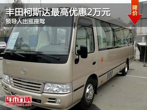 丰田的考斯特是一款世界上公认出色的客车,后来为了让更多的人记住它便改了个名字叫"柯斯达"。80年代开始就陪同众多领导人到地方考察就足见其实力。近日,根据网上车市价格系统显示,目前柯斯达价格最高优惠2万元。具体车型及优惠如下表: