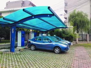 虽然E50的销售尚未正式启动,但该4S店外已经安装了5个充电桩。据销售人员介绍,这些充电桩可以开放给其他品牌电动车使用,预计明年开始明确收费细则。