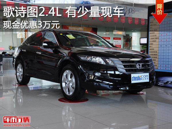 广汽本田歌诗图是一款基于雅阁平台设计开发的跨界车型,最大的亮点是与宝马X6很相似的尾部设计,收紧下滑的造型充分融入了跨界车的风格。近日,笔者从广汽本田北京广汽航天4S店获悉,2012款歌诗图有少量现车,现金优惠3万元。具体如下: