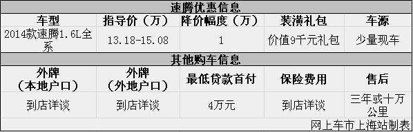 上海:一汽大众速腾现优惠让利1万元 送大礼包