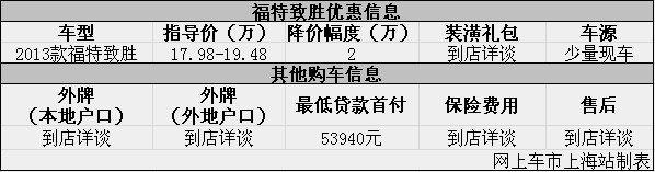上海:福特致胜现优惠让利2万元 购车少量现车