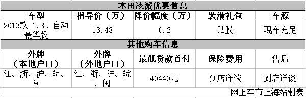 上海:广汽本田凌派现优惠0.2万元 送汽车贴膜